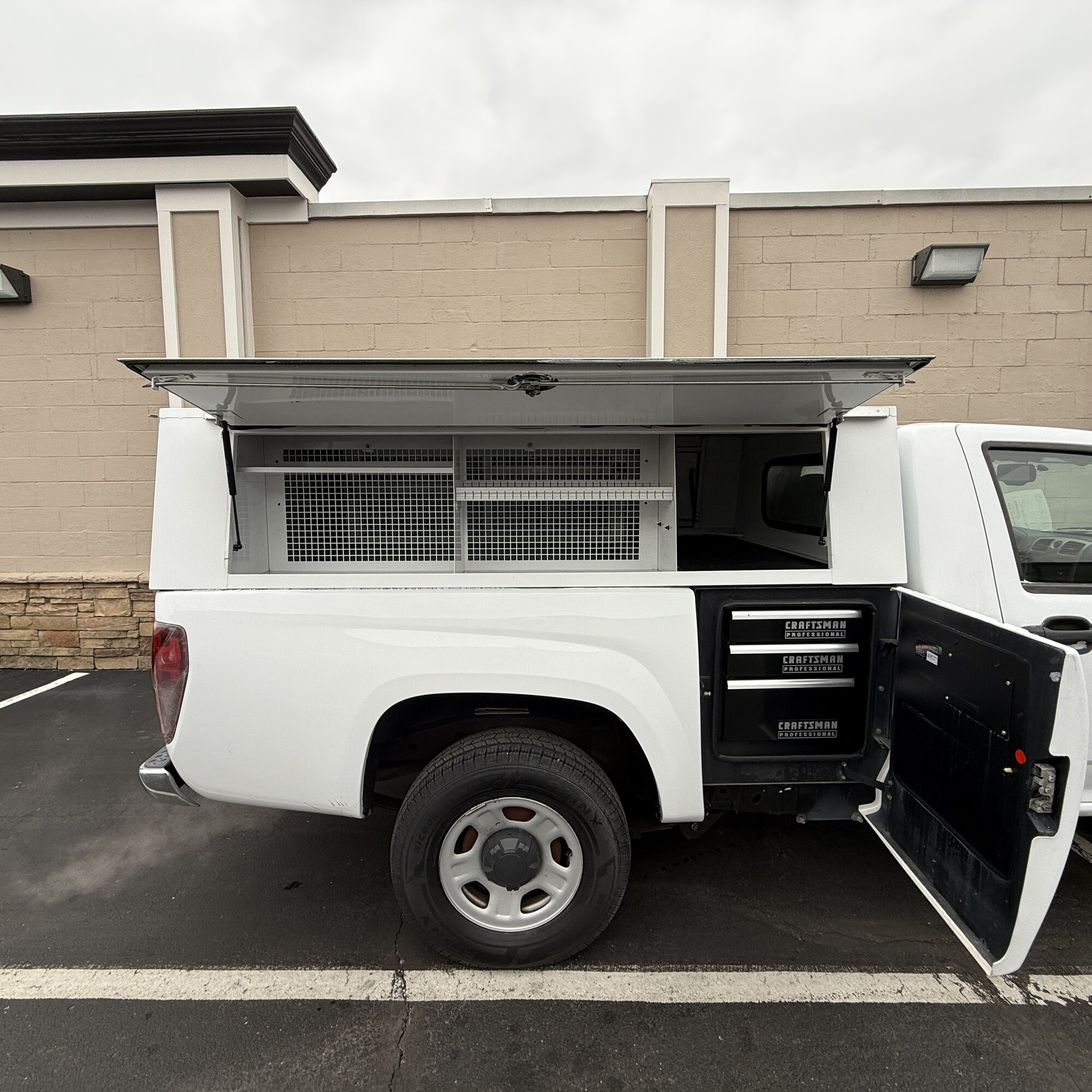 This 2012 Chevrolet Colorado Work Truck is a one-owner vehicle with only 42,000 miles - perfect for contractors and tradespeople. Features a professional-grade utility bed with lockable side compartments, Craftsman tool drawers, and ample interior storage space. Powered by a reliable 3.7L I5 engine with automatic transmission. Equipped with backup camera and cruise control for convenience. The clean white exterior and well-organized utility bed make this an ideal work truck ready for any job site.