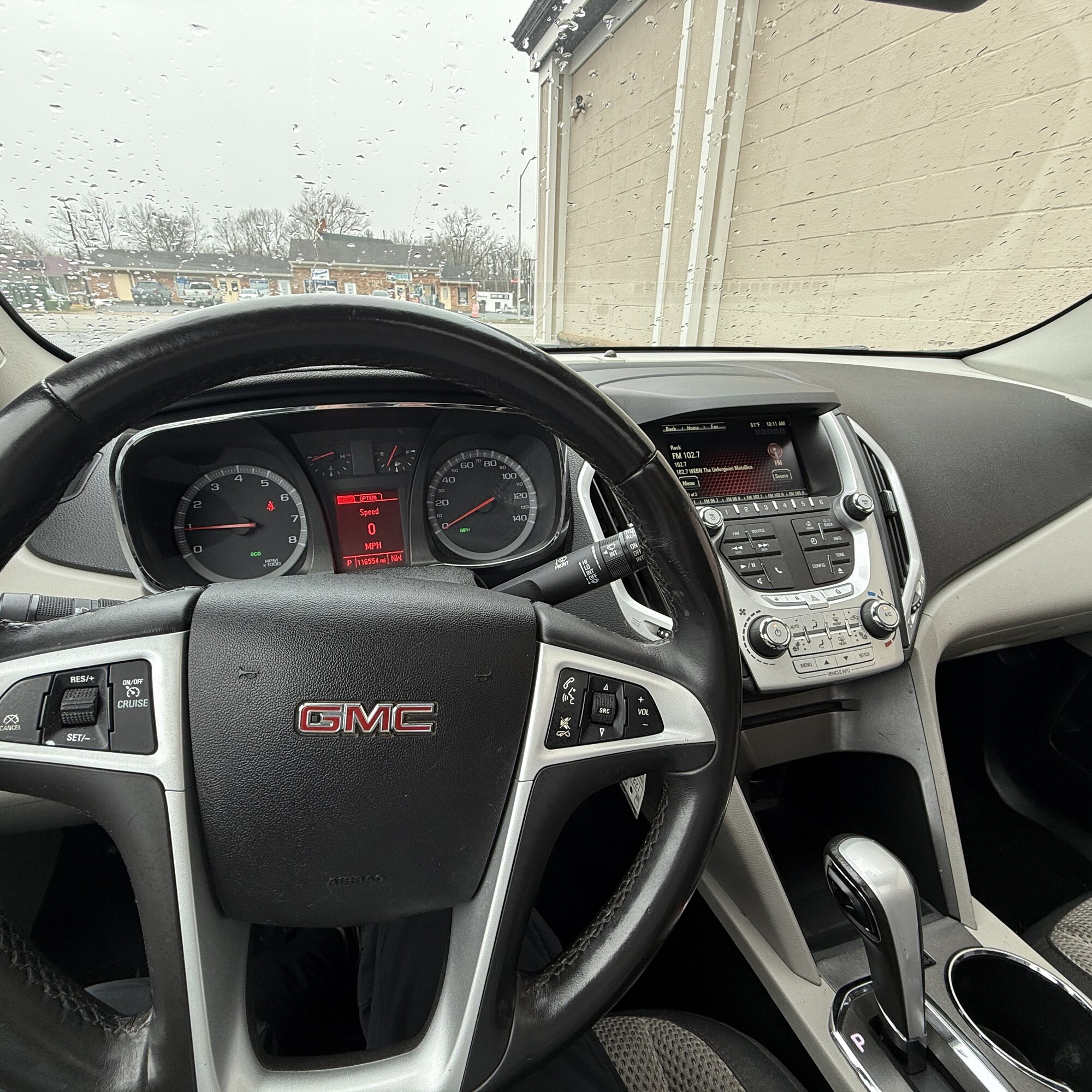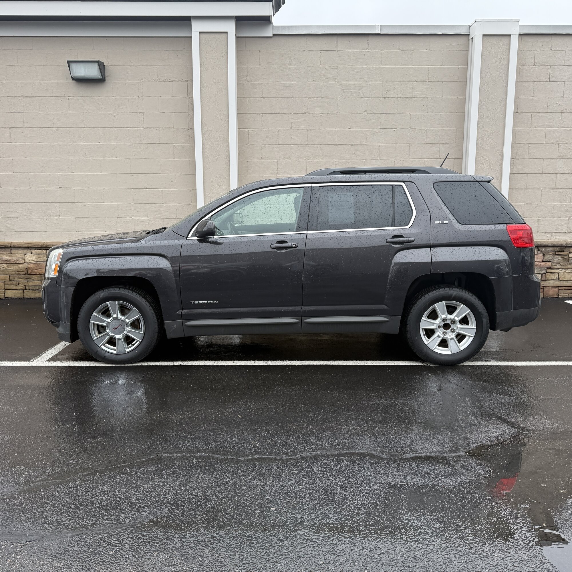 This 2013 GMC Terrain SLE is a sharp, well-equipped compact SUV with 116,553 miles. Finished in black with a clean gray interior, it is powered by a gasoline engine paired with an automatic transmission. Loaded with comfort and convenience features including a sunroof, power seats, alloy wheels, CD player, power locks and windows, rear window defroster, side curtain airbags, tilt wheel, anti-lock brakes, cruise control, power mirrors, steering wheel controls, and AC. A solid choice for anyone wanting a stylish and practical daily driver.