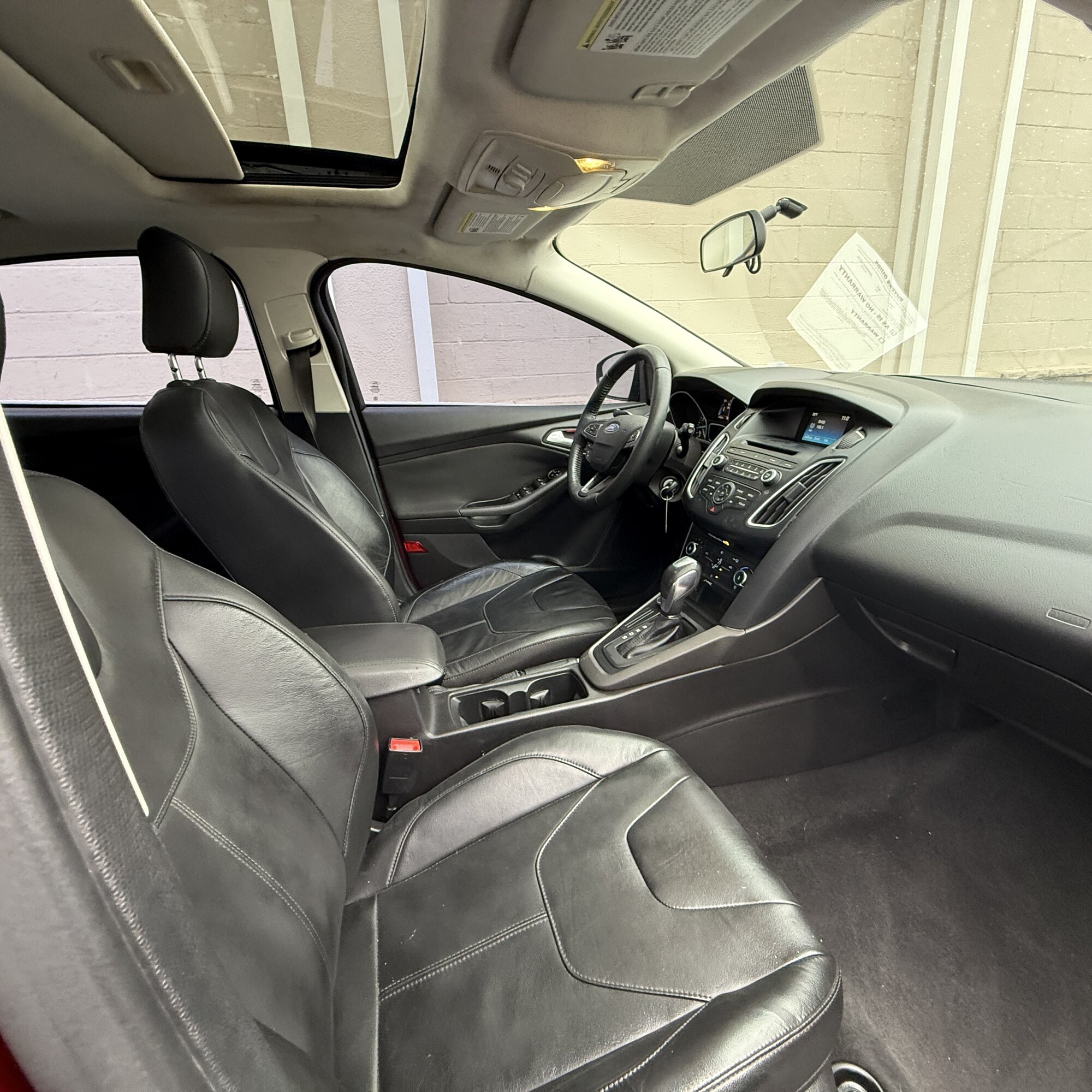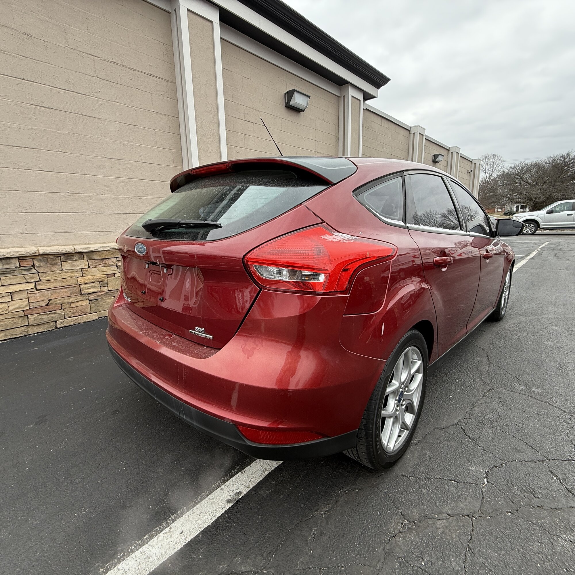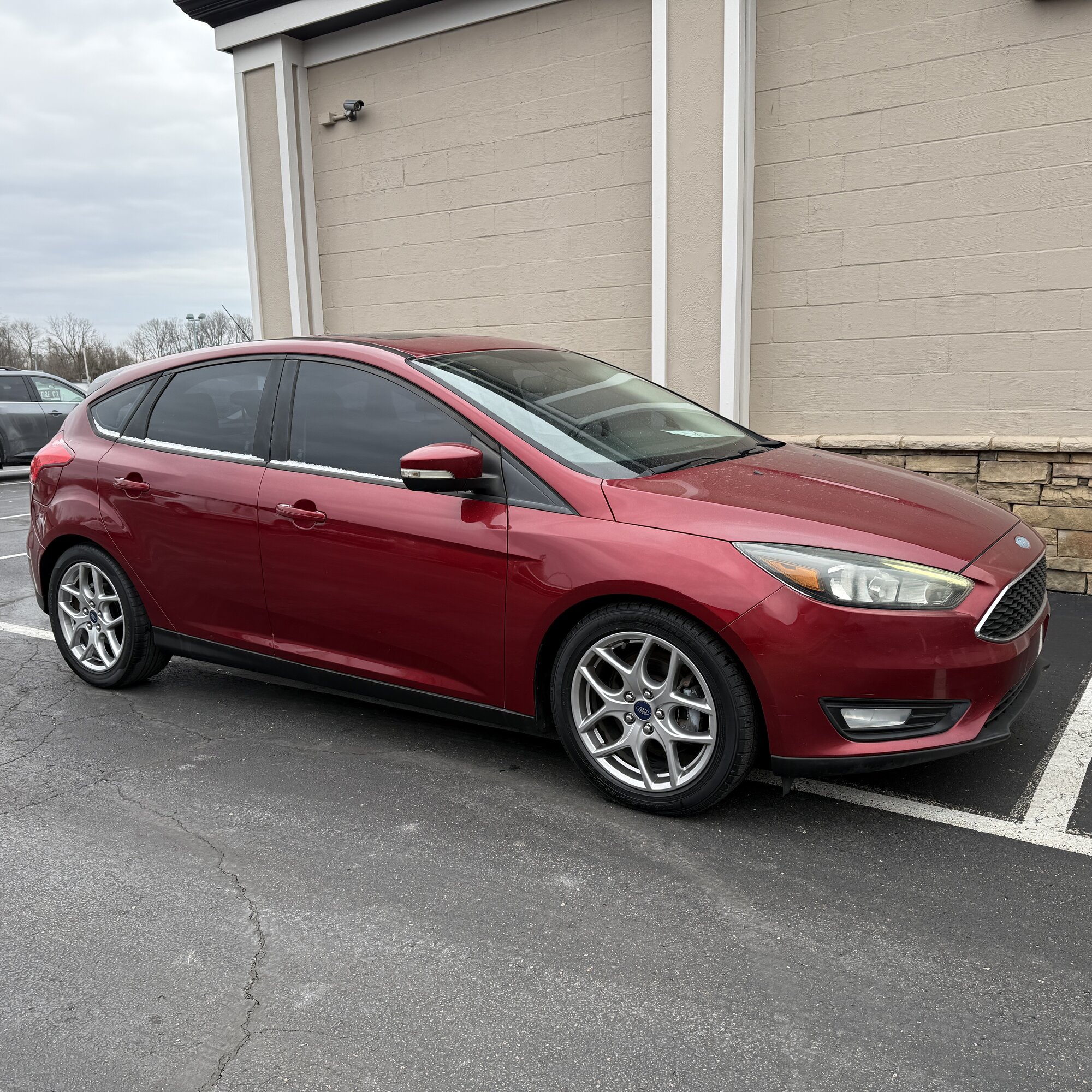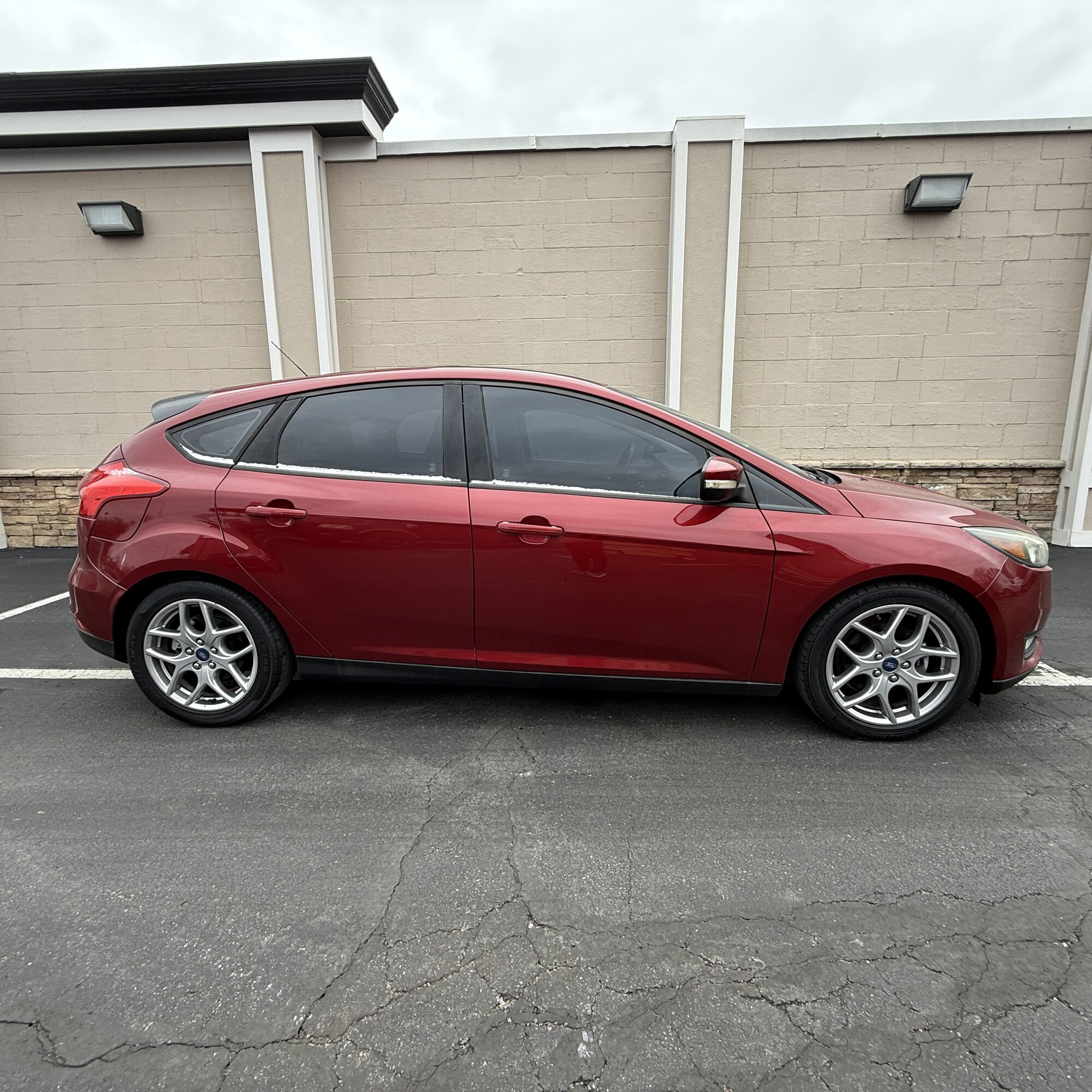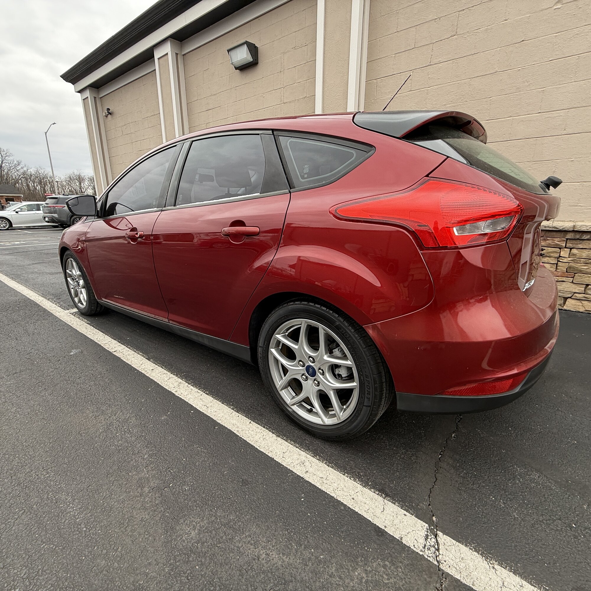 This 2015 Ford Focus SE Hatchback is a sporty and fuel-efficient compact car with only 58,000 miles. Finished in an eye-catching maroon exterior with black leather interior, this Focus offers premium features including a power sunroof, keyless entry, and power driver's seat. The 2.0L 4-cylinder engine provides excellent fuel economy while the hatchback design offers versatile cargo space. A great choice for commuters or anyone looking for a stylish, practical vehicle.